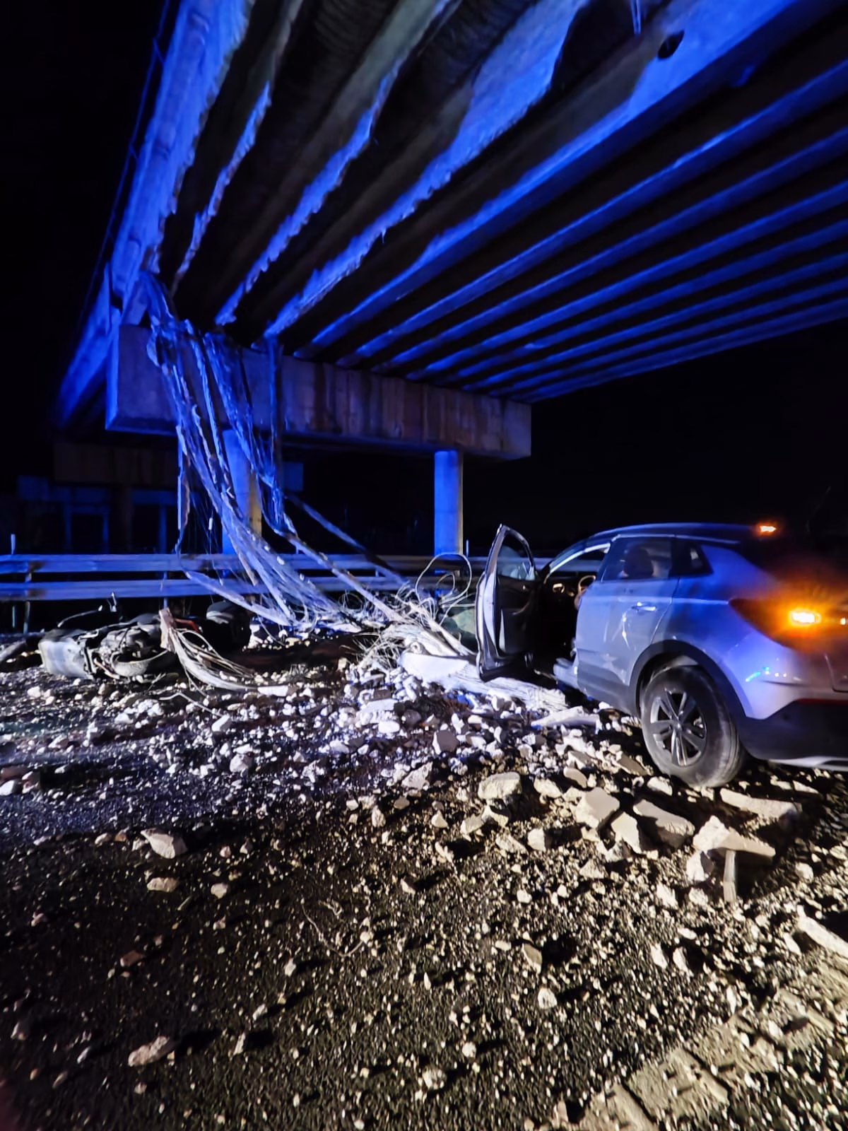 El siniestro se produjo cuando un camión con grúa, que circulaba por la vía, impactó contra la estructura del puente al no haber recogido completamente el brazo articulado. El golpe contra el tablero provocó la caída de cascotes y trozos de hormigón sobre la calzada. En ese momento, un coche y una motocicleta que circulaban por la zona se vieron afectados: la conductora del turismo colisionó contra el guardarraíl y el motorista sufrió una caída. Ambos resultaron heridos leves y fueron atendidos en el lugar.