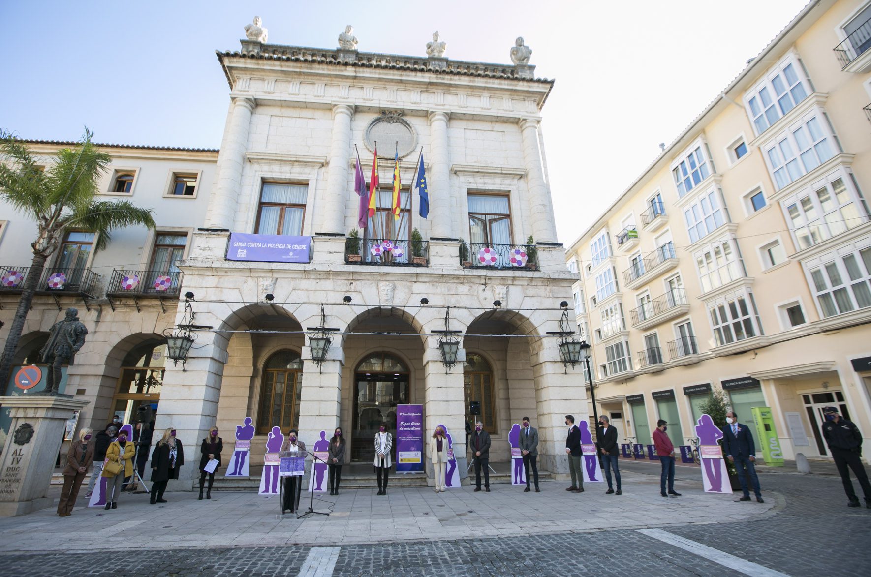 La plaça Major de Gandia ha acollit els actes programats per a commemorar el 25N, Dia Internacional per a l’eliminació de la violència de gènere. Tots els assistents han guardat un minut de silencia per la memòria de les 41 dones assassinades durant el 2020 i les 1074 des de que es tenen xifres oficials (2003).