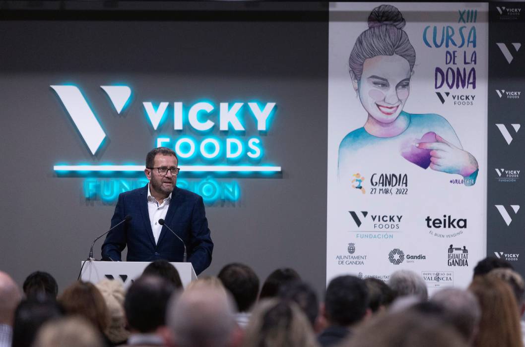 Rafa Juan, en primer lugar, tuvo un recuerdo para las víctimas de la guerra en Ucrania, y el deseo de que pronto se restablezca la paz. Apuntó que la Cursa, en la que Vicky Foods se estrena como patrocinador principal, “supone volver a la normalidad”. Añadió que, como en la Cursa, “para nuestra empresa la mujer siempre ha significado mucho”. En este punto mencionó a su madre y fundadora del grupo, Victoria Fernández, fallecida en abril de 2021. “Ella hubiera estado encantada de estar aquí, con nosotros, aunque afortunadamente seguimos teniendo a su hermana, mi tía Gloria, que también es un ejemplo de mujer emprendedora y sacrificada”.