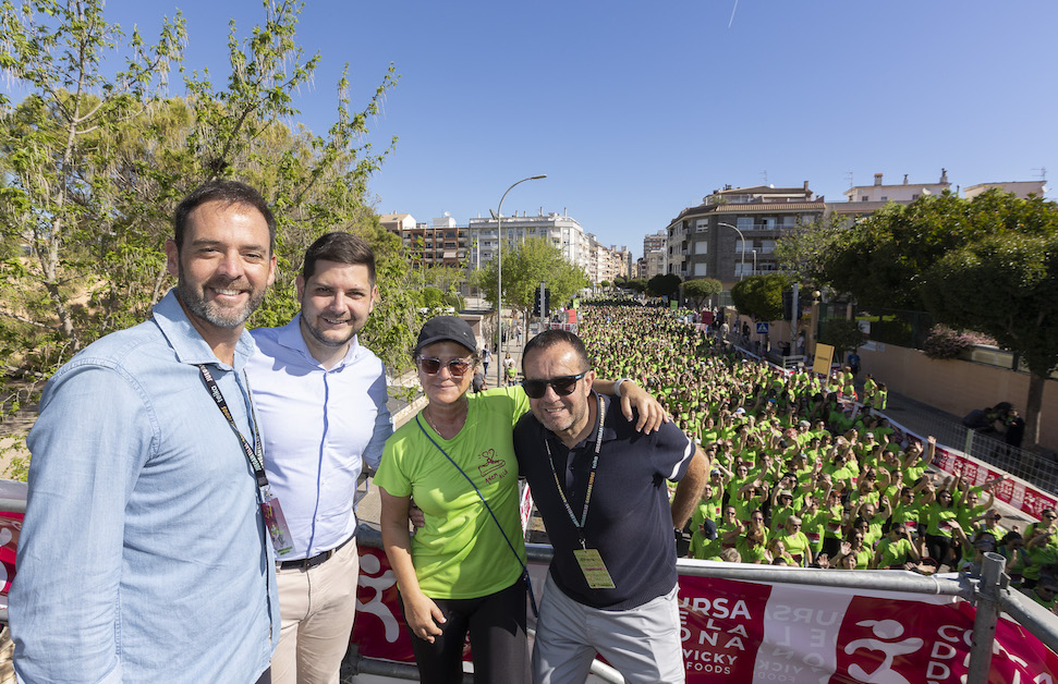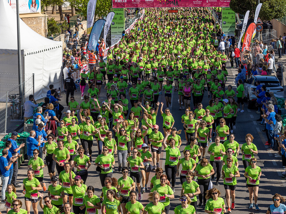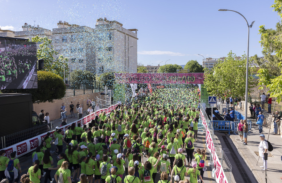 La “marea verde” de corredoras y caminantes salió a las 10.30 horas al ritmo de la canción “Mediterrània”, de la Fúmiga, y entre papelinas de colores amarillo y azul como gesto de solidaridad y pacifista contra la guerra de Ucrania. Los “speakers” de la carrera fueron los periodistas Puri Naya y Xavi Blasco.