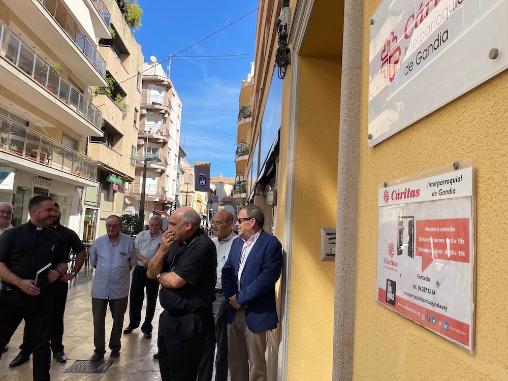 La máxima autoridad eclesial ha realizado la visita acompañado del presidente de la entidad, Juan José Monfort, el equipo directivo de Cáritas Gandia, lo párrocos de la ciudad y representantes de la Cáritas Diocesana de Valencia.