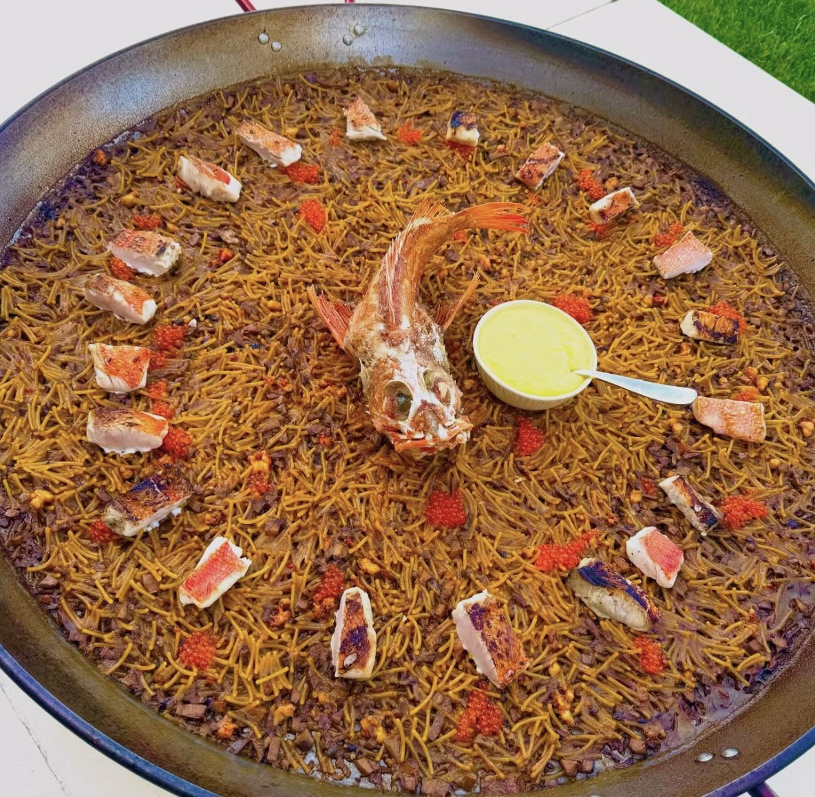 A través de un post en sus redes sociales, el chef ha compartido una creación a la que ha bautizado como “Fideuá Monocromática”. En palabras del propio Muñoz, esta versión evoca “recuerdos de Gandia” y se construye sobre un sofrito de carabineros y níscalos al azafrán, acompañado de virrey a la brasa, cabracho en fritura, huevas de trucha y un alioli de mandarinas. Muñoz ha acompañado el post con una canción que habla de este plato emblemático de la ciudad.