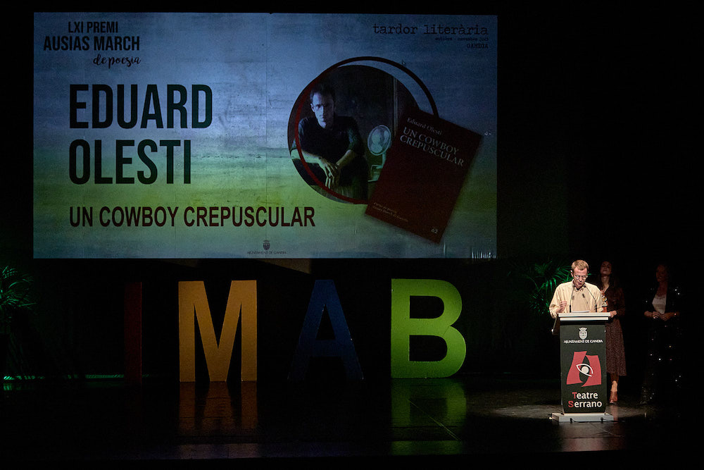 Així, Eduard Olesti, per ‘Un cowboy crepuscular’ va recollir el guardó com guanyador del LX PREMI AUSIÀS MARCH DE POESIA. Per la seua banda, Laia Fàbregas, amb «El silenci dels astronautes», va arreplegar el XLV PREMI JOANOT MARTORELL DE NARRATIVA.