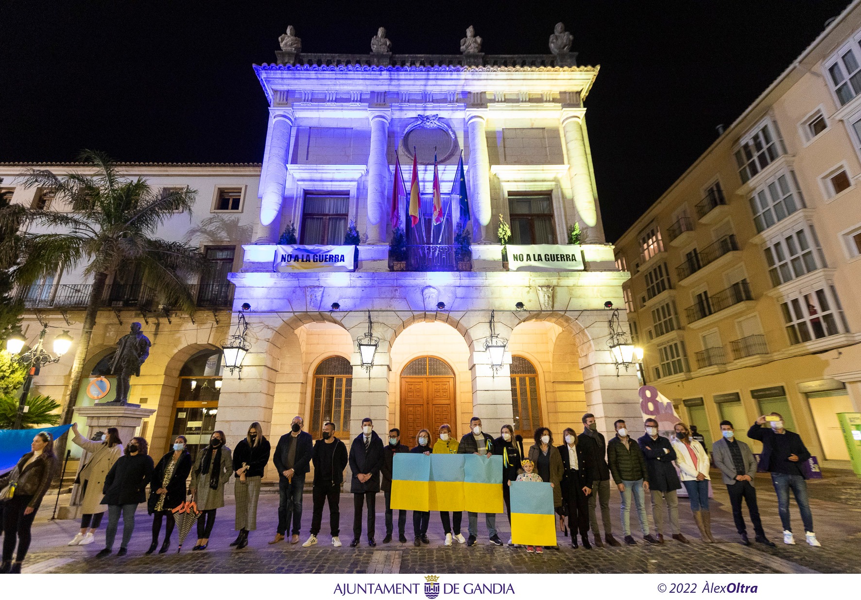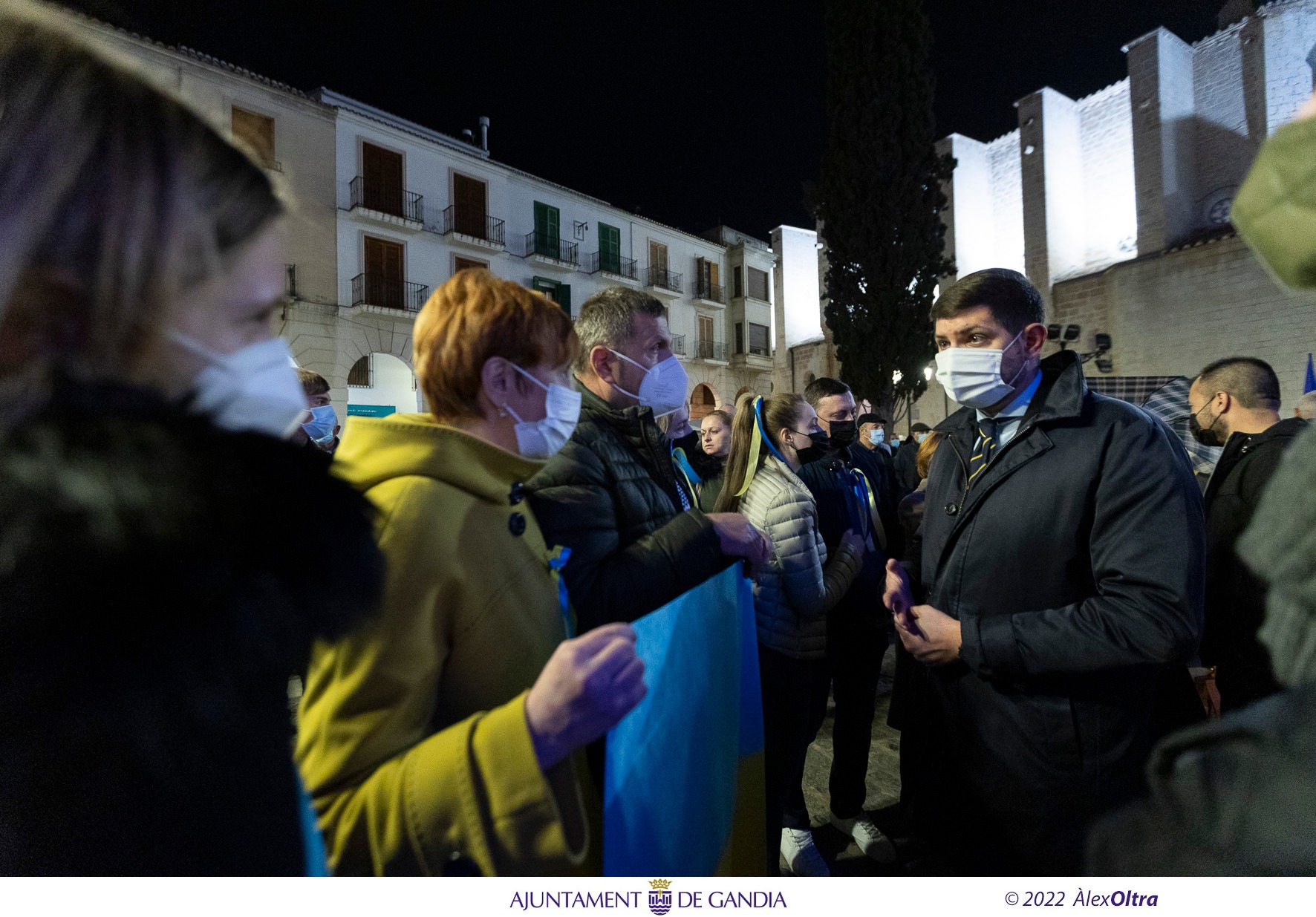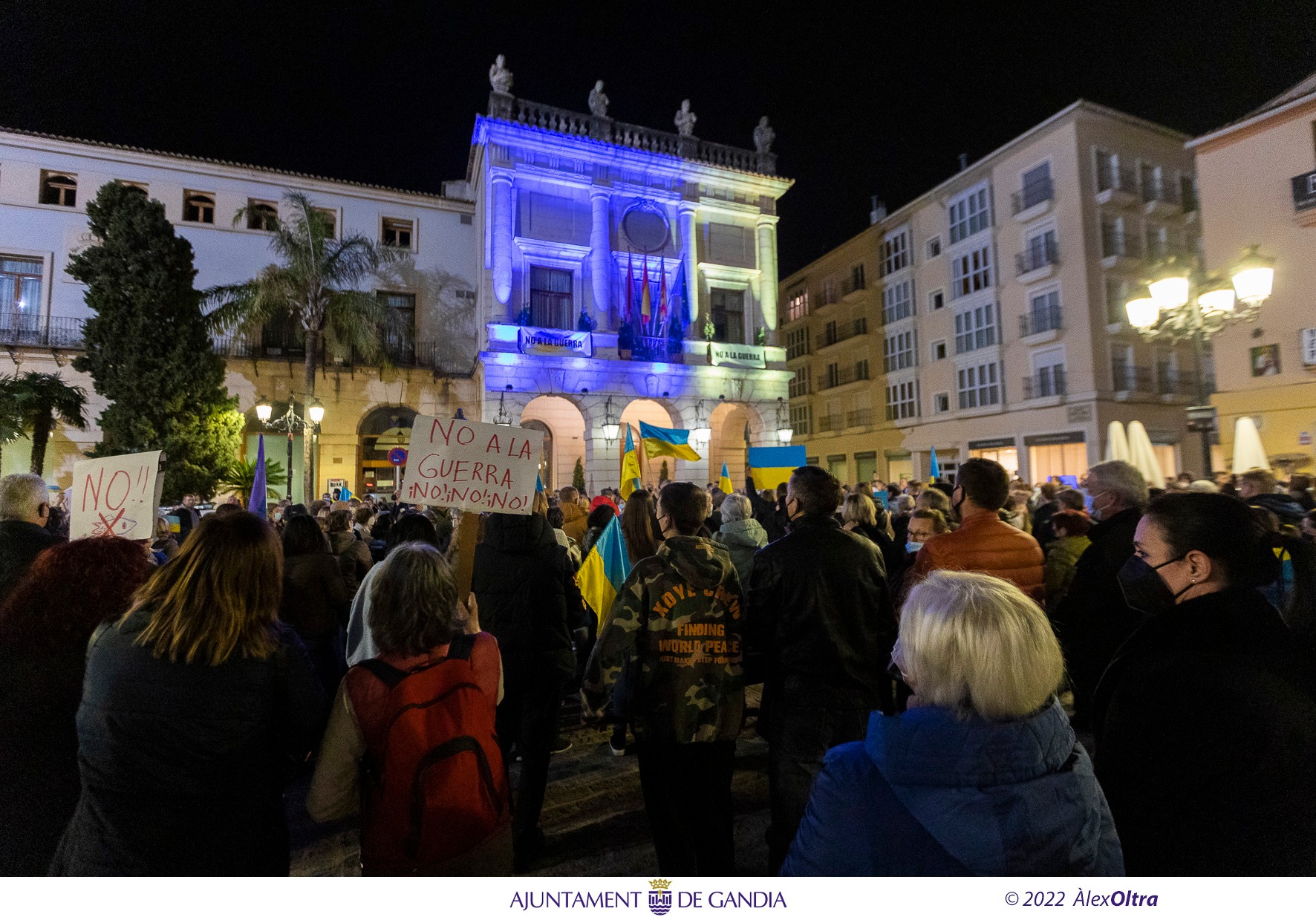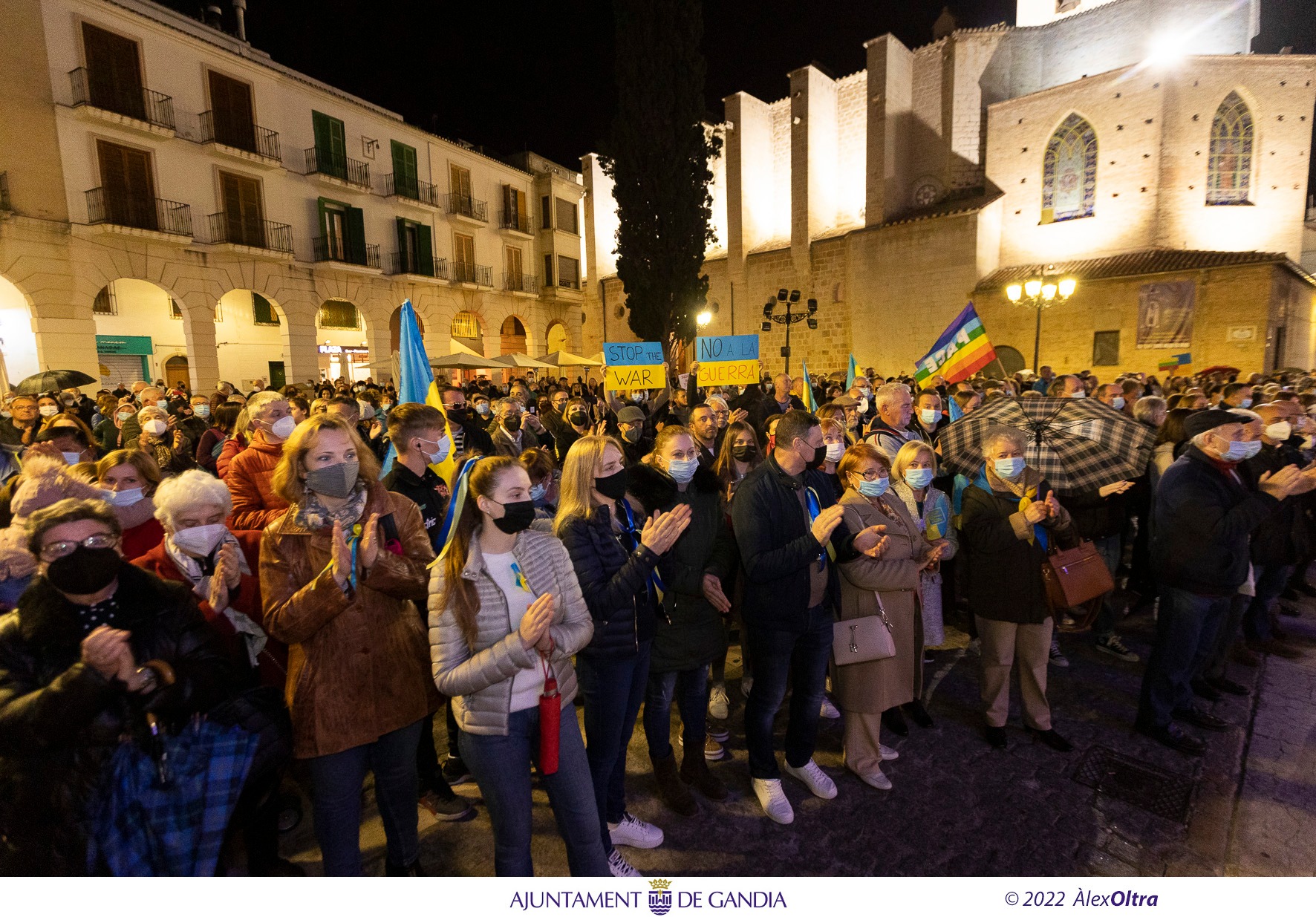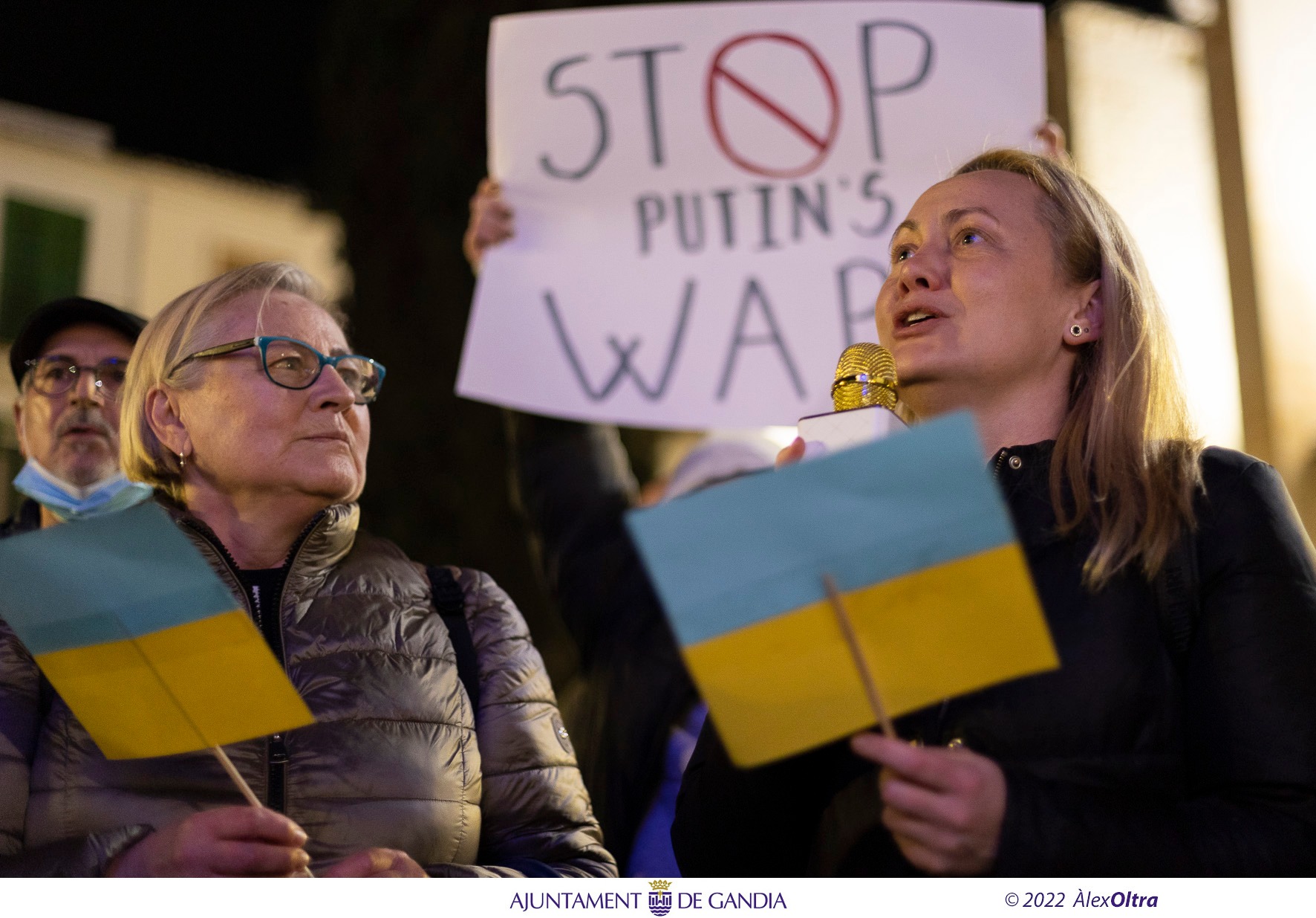 Entre los congregados, representantes políticos y sociales y un gran número del casi medio millar de ucranianos que residen en la Safor. Y la Gandia libre, comprometida, la que da un paso al frente frente a las injusticias. La bandera que reinaba la noche de este jueves era la azul y amarilla, sujetada por la impotencia, la pena y el dolor de la muerte, y a la vez por la determinación y la lucha en la distancia.