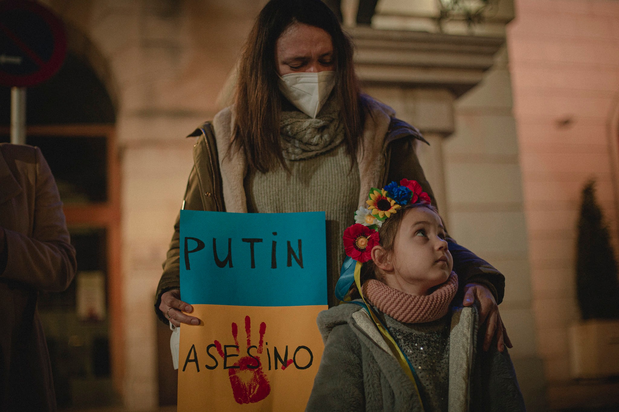 Llovía ligeramente poco antes de la concentración en la Plaza Mayor de Gandia para decir, en silencio y a viva voz, ¡no a la guerra!. No a la invasión de Ucrania. Cesó la lluvia, y retumbó el himno de un país cantado por las víctimas de un conflicto impropio de cualquier época, y más de este siglo.