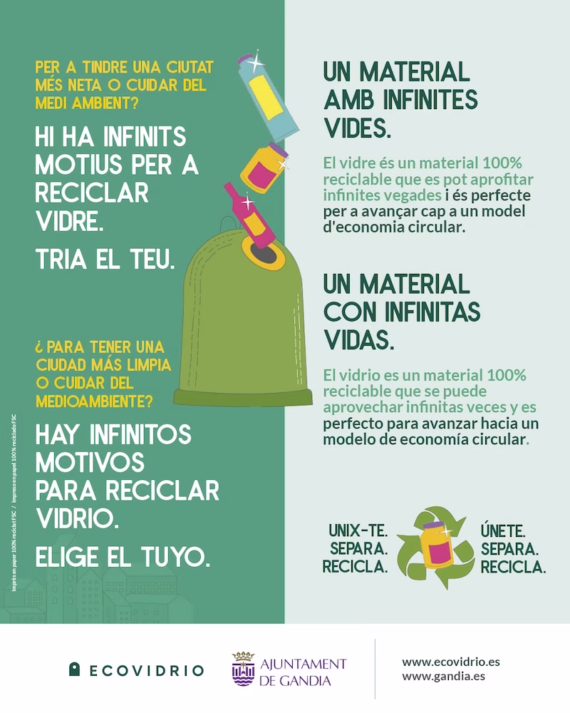 El Ayuntamiento de Gandia, en colaboración con Ecovidrio, ha presentado hoy la campaña Ecobarrios, una iniciativa destinada a aumentar la tasa de reciclaje de vidrio en la ciudad. La presentación tuvo lugar en rueda de prensa con la participación del concejal de Servicios Básicos, Adrià Vila, el director general del área, Sebas Gálvez, y el gerente de Ecovidrio en la Comunidad Valenciana, Manuel Sala.