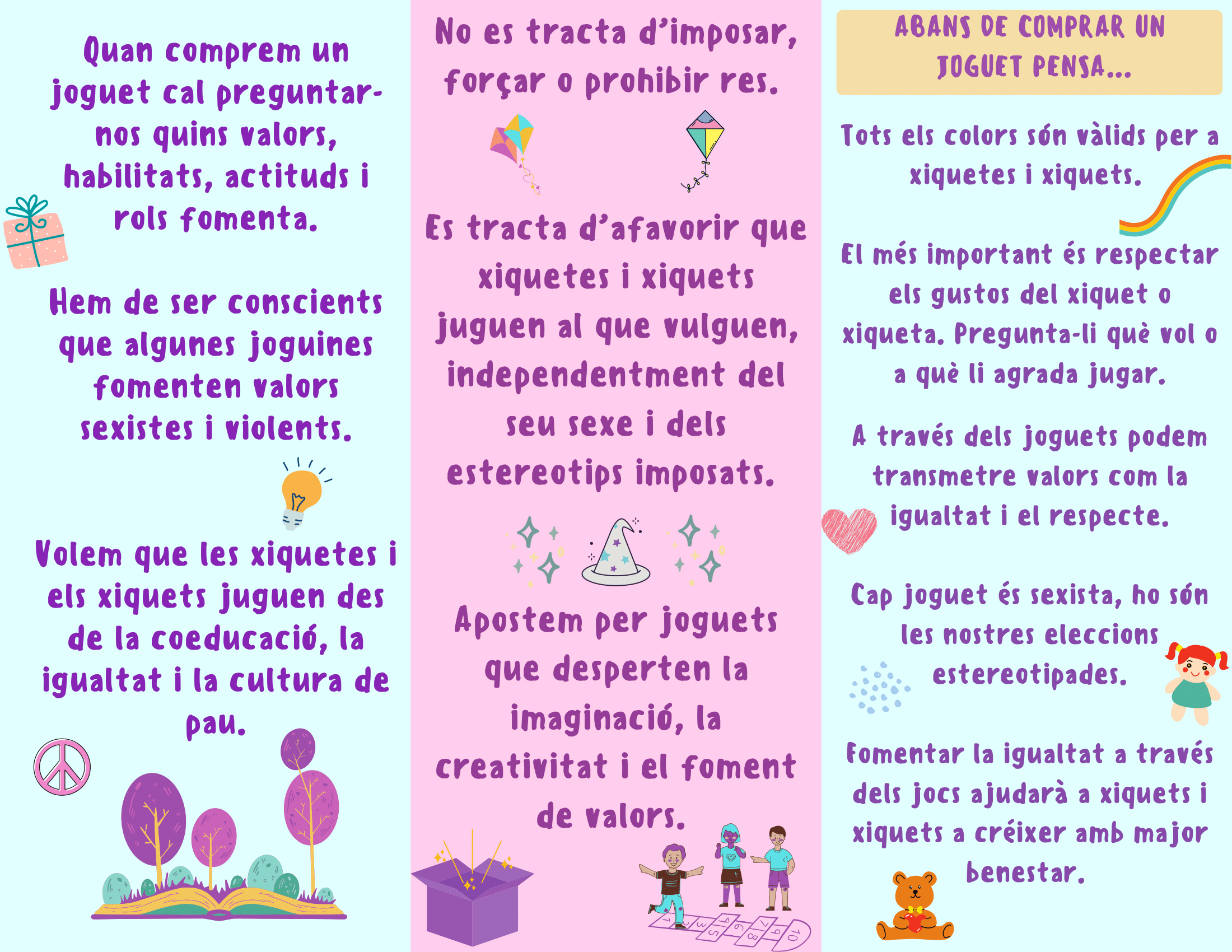 «No es tracta de prohibir jugar a res, sinó de prendre consciència sobre les decisions que els adults prenem pels més menuts, guiant-nos per qüestions d’estereotips de gènere«, ha destacat la regidora del departament, Juana Navarro.