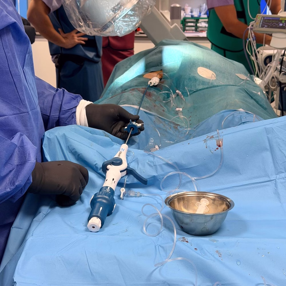 La intervención fue llevada a cabo por el servicio de Medicina Intensiva en el quirófano de la Unidad de Cuidados Intensivos (UCI), en el marco de una situación clínica que requería una solución rápida, segura y mínimamente invasiva.