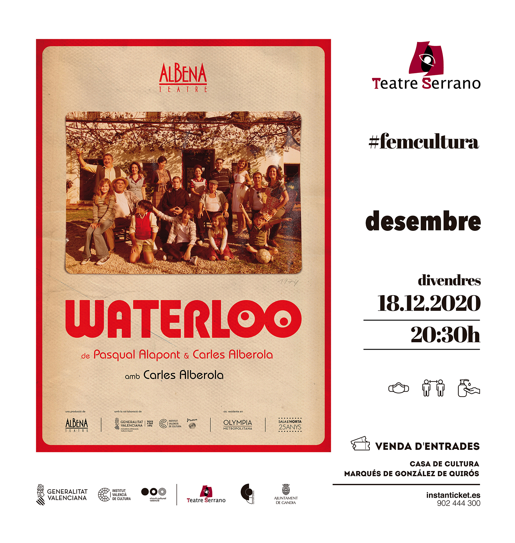 Ja és desembre, i ja és Nadal, en el Teatre Serrano. El Departament de Cultura de l’Ajuntament de Gandia ha apostat per una programació variada, diversa, feminista i familiar. Cultura segura en temps de cerca de somriures.