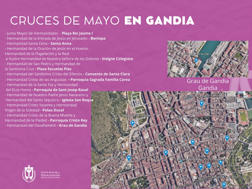 Cada año, la ciudad de Gandia se viste de flores y tradiciones para honrar la festividad de las Cruces de Mayo. Este evento, marcado por la confección de cruces adornadas con flores, se remonta a la Edad Media, y en Gandia ha alcanzado su máximo esplendor en los siglos XIX y XX.