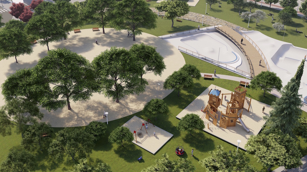 Además del skatpark, la zona de juegos infantiles será la más grande de la ciudad, ya que ocupará una superficie de 200 metros cuadrados y podrá albergar hasta 90 niños al mismo tiempo. En estas actuaciones la sostenibilidad estará presente, pues la intención es que los materiales que se utilicen tanto en la zona de juegos infantiles como en el mobiliario urbano sean ecológicos o procedentes de materiales reciclados.