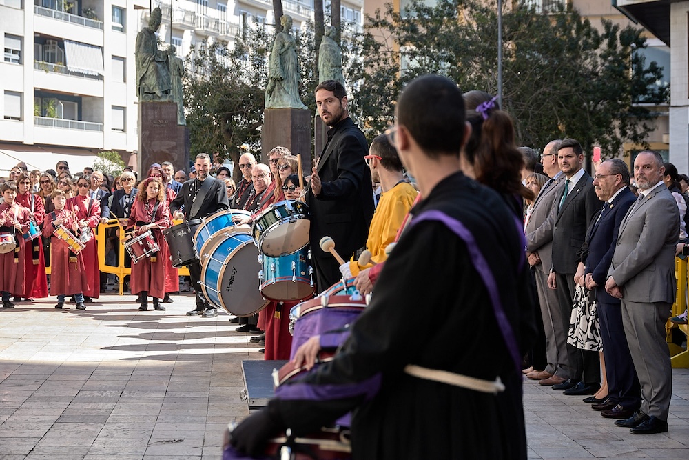 La Semana Santa de Gandia, declarada Fiesta de Interés Turístico Nacional, ha dado este sábado el pistoletazo de salida a su programación con dos de sus actos más representativos: la tamborrada y el pregón.