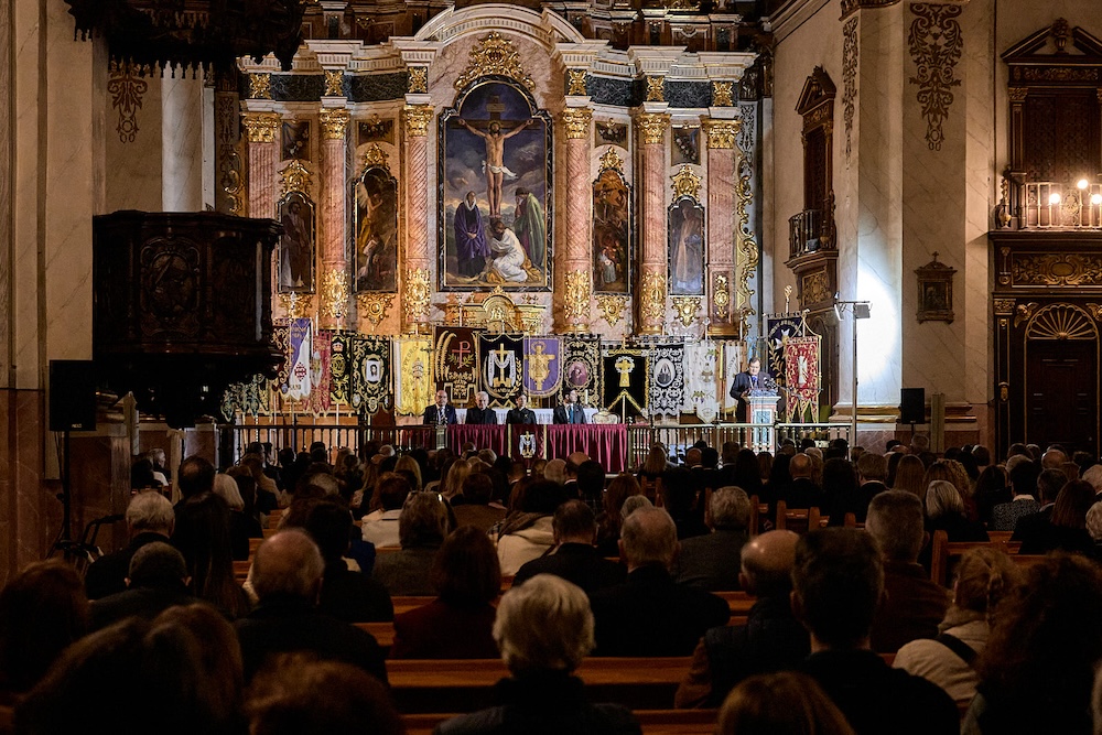 Posteriormente, la iglesia de las Escuelas Pías ha sido escenario del pregón oficial, que este año ha corrido a cargo del obispo auxiliar de València, Fernando Ramón Casas, encargado de abrir formalmente las celebraciones.