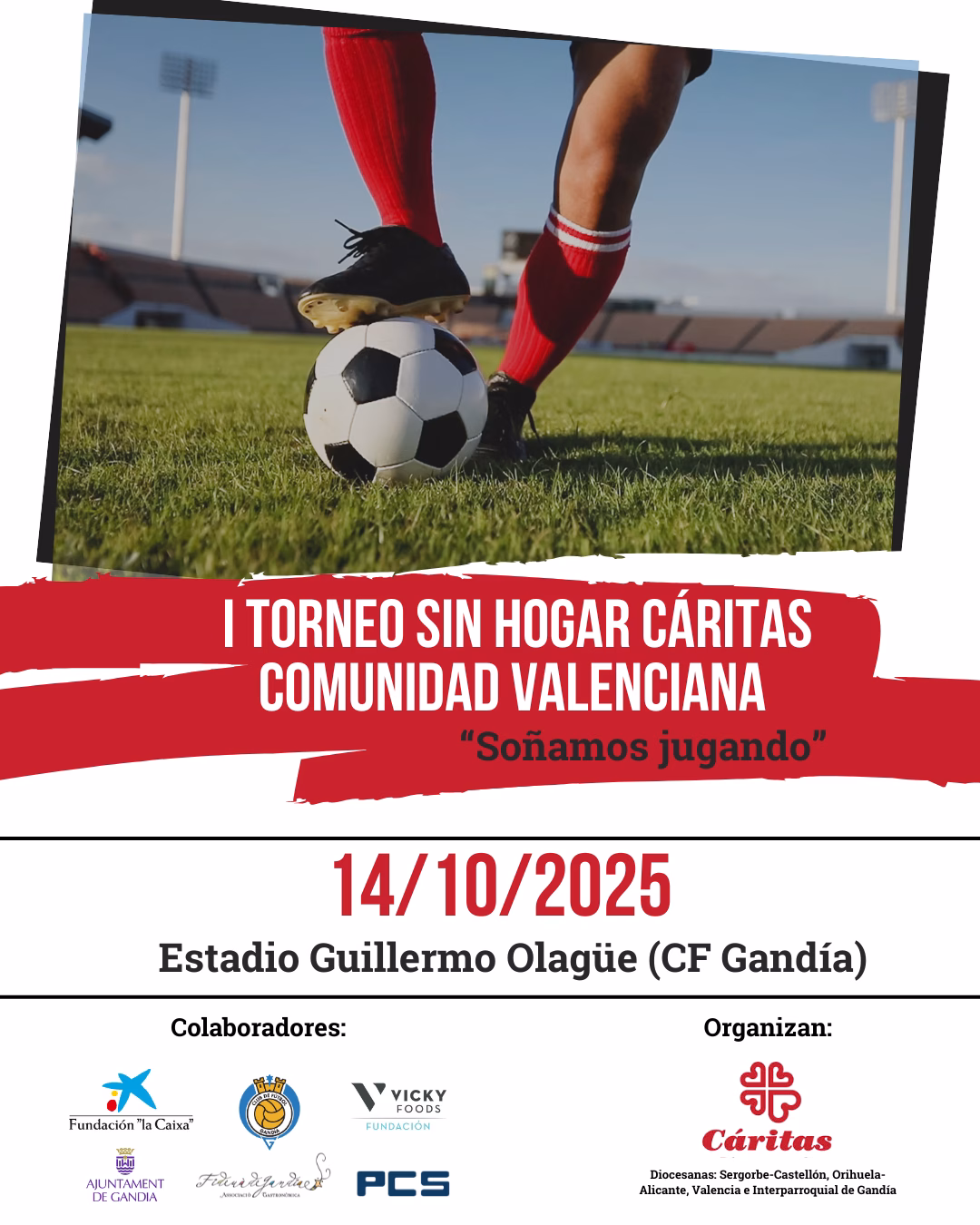 El próximo martes 14 de octubre, el Estadio Guillermo Olagüe de Gandia se convertirá en un espacio de convivencia y solidaridad con la celebración del I Torneo Sin Hogar Cáritas Comunidad Valenciana, organizado por Cáritas Interparroquial de Gandia.
