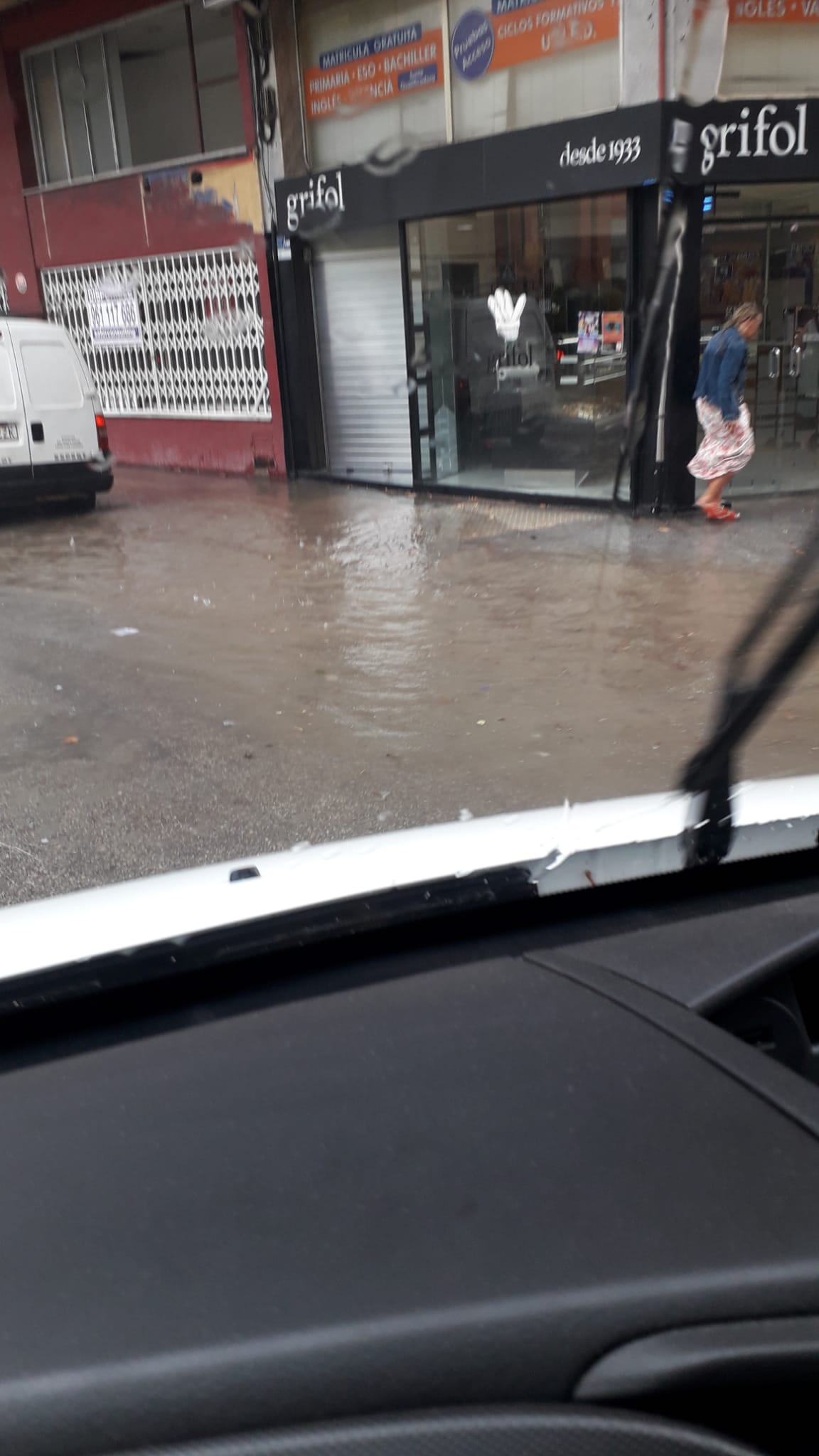 Una tromba de agua, la mañana del miércoles 18 de septiembre, ha inundado las calles de Gandia. La lluvia, acompañada por rachas de viento, ha dejado multitud de calles repletas de agua.