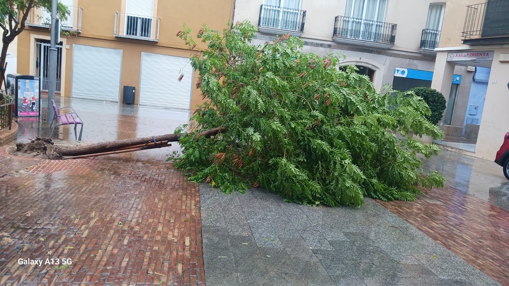 Se ha producido un reventón húmedo, con rachas de viento que han rondado los 60-90 km/h de forma local en el centro de la Safor. Como consecuencia, algunos árboles de la ciudad han sufrido daños.