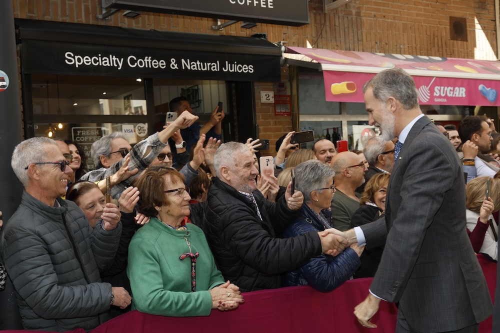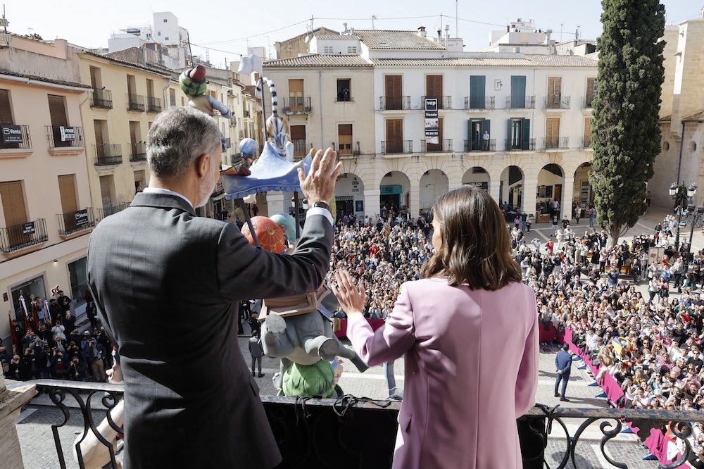 El recorrido real por Gandia también incluyó la contemplación de la emblemática Falla del Mercat en la Plaza Mayor, acompañados por la música de las agrupaciones de bandas locales, los Reyes han recibido el cálido saludo de cientos de ciudadanos que se congregaron para presenciar este hito histórico.