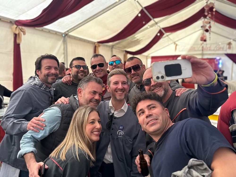 El secretario general del PPCV, Carlos Gil, y el vicepresidente del Consell, José Díez, así como el director general de Coordinación de la Acción del Gobierno, Alberto Pascual, han visitado este 17 de marzo las Fallas de Gandia.